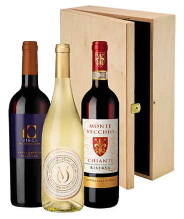 Italien från norr till söder: Från spritsig pinot grigio från Veneto till superfruktig primitivo appassimento från djupa södern. Den här lådan är det perfekta valet för dig som uppskattar italienska viner. Pinot grigio-vinet är friskt och elegant medan Dieci presenterar Apuliens stjärndruva primitivo i en extra intensiv och fyllig stil. Och Monte Vecchio Chianti Riserva bevisar varför Toscanas viner är så populära.